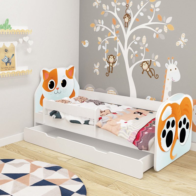 Dječji krevet ACMA Animals, bočna bijela + ladica 180×80 cm 02 Mačka