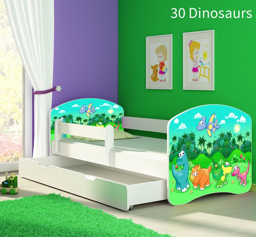 Dječji krevet ACMA s motivom, bočna bijela + ladica 180×80 cm 30 Dinosaurs