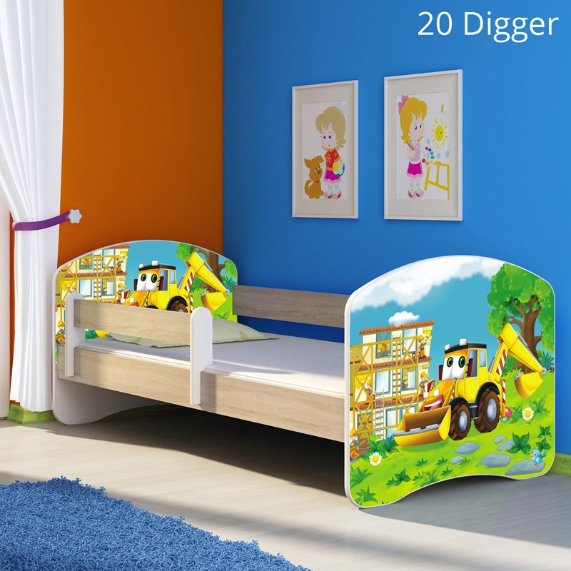 Dječji krevet ACMA s motivom, bočna sonoma 160×80 cm 20 Digger