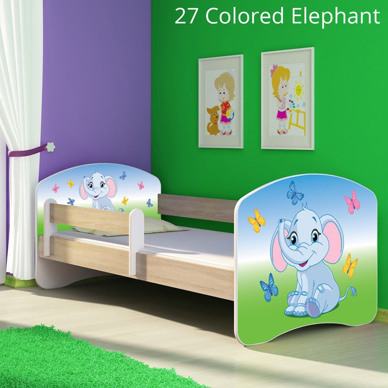 Dječji krevet ACMA s motivom, bočna sonoma 180×80 cm 27 Colored Elephant