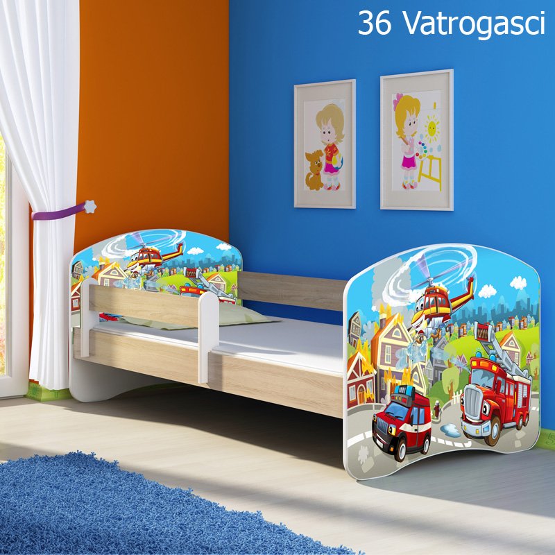Dječji krevet ACMA s motivom, bočna sonoma 180×80 cm 36 Vatrogasci
