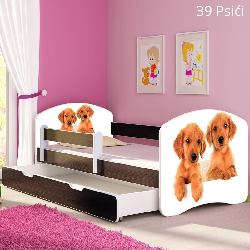 Dječji krevet ACMA s motivom, bočna wenge + ladica 140×70 cm 39 Psići
