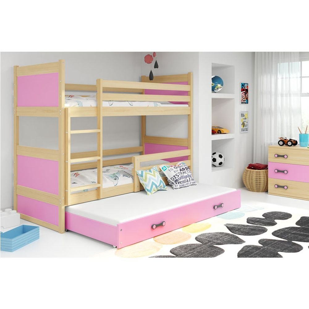 Krevet BMS Rico na kat za 3 osobe 200×90 cm, PINE roza